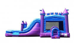 Take the fun and excitement of jumping and playing in a water slide bounce house and MEGA SIZE it with the Mega Purple Water Slide Bounce House Combo! From their bright, vibrant colors, to the spacious bouncing area and incredibly fun big slide, kids can't help but look at these units in awe. This unit stretches out for 32' feet of fun, exciting activities that may even have a few parents secretly wanting to jump in! Crawl into the bouncing area through our upgraded, enclosed tunnel entrance. Have a blast jumping, bouncing and laughing the day away on this mega bouncer! It even has a basketball hoop inside the bouncing area for extra fun! Climb up the short rock climb wall to get a view of the flowing water down the slide. Get ready, then head down into the splash pool at the bottom for a grand finale and some photos for the scrapbook!